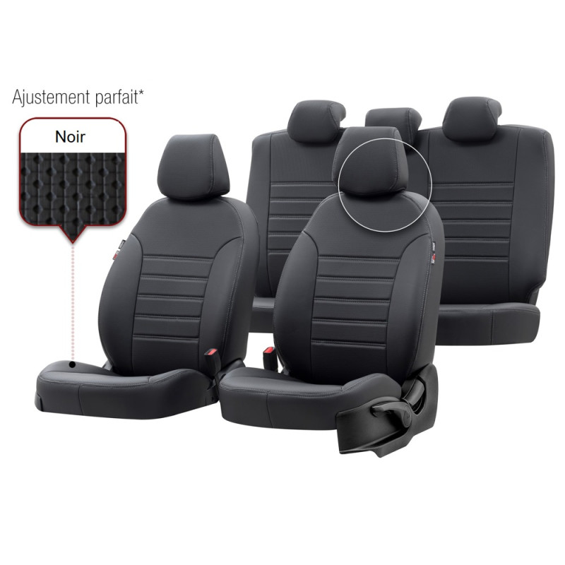 Vos sièges restent fonctionnelles : airbags, accès aux vide-poches et tablettes, molettes de réglage, custodes, boite à gants, accoudoirs, formes des appui-tête (virgule, ergonomique, plein…). Vos sièges seront complètement recouverts et vous n'apercevrez plus votre sellerie d'origine. La coupe est spécifique à votre véhicule, c'est à dire que les housses auto sont aux mesures de votre voiture.