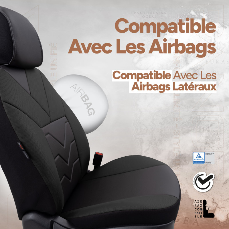 Vos sièges restent fonctionnelles : airbags, accès aux vide-poches et tablettes, molettes de réglage, custodes, boite à gants, accoudoirs, formes des appui-tête (virgule, ergonomique, plein…). Vos sièges seront complètement recouverts et vous n'apercevrez plus votre sellerie d'origine.