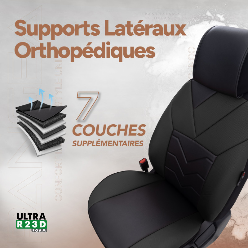 Offrez à votre voiture un look premium et un confort exceptionnel avec la housse universelle PANGEA. Une conception soignée digne du sur-mesure et un confort supérieur : fabriquée en simili cuir de haute qualité et de 7 couches de tissu renforcées, elle protège intégralement vos sièges avant tout en restant compatible avec les airbags latéraux et la majorité des véhicules (hors monospace).