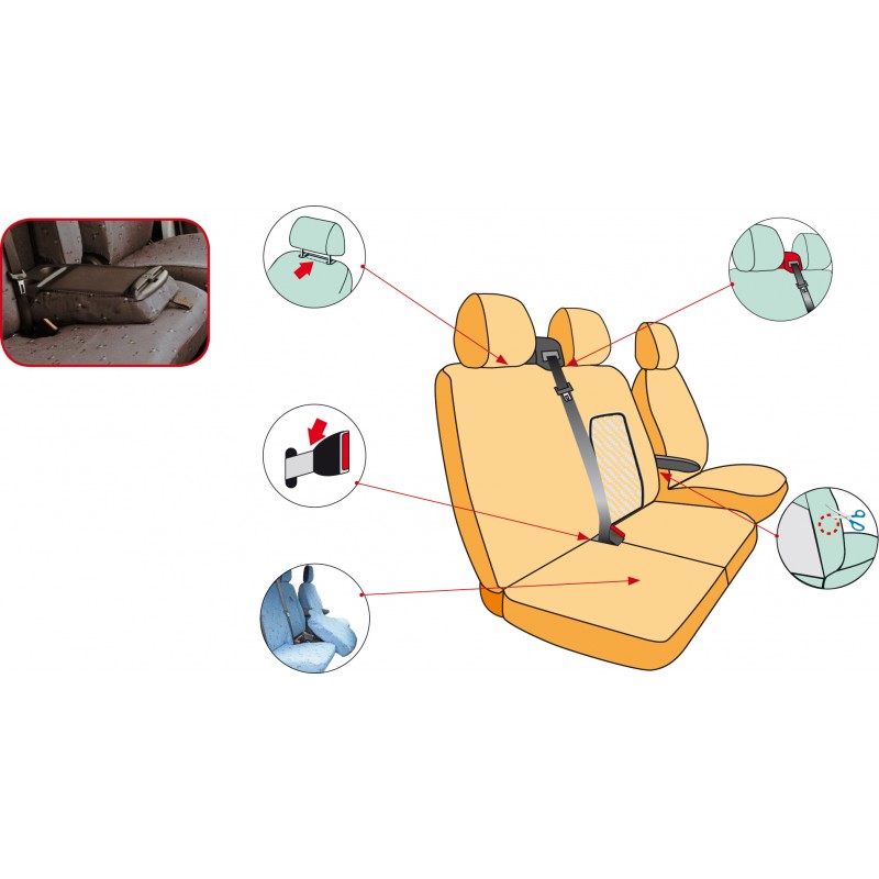 Vos sièges restent fonctionnelles : airbags, accès aux vide-poches et tablettes, molettes de réglage, custodes, boite à gants, accoudoirs, formes des appui-tête (virgule, ergonomique, plein...). Vos sièges seront complètement recouverts et vous n'apercevrez plus votre sellerie d'origine. La coupe est spécifique à votre véhicule, c'est à dire que les housses auto sont aux mesures de votre voiture.